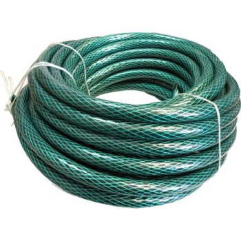 Этот трехслойный армированный шланг изготовлен из ПВХ. Его длина составляет 50 метров, диаметр 19 мм, максимальное давление – 10 бар.