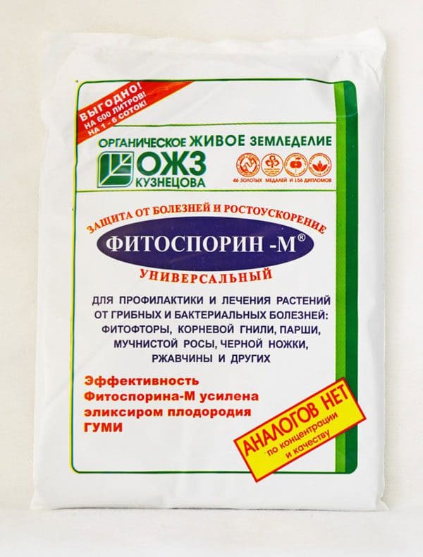 - «Фитоспорин» – раствор для обработки земли готовят в расчете 6 мл препарата + ведро воды.