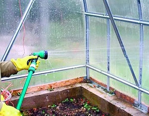 - Тщательная промывающая процедура необходимо во внутренней части теплицы.