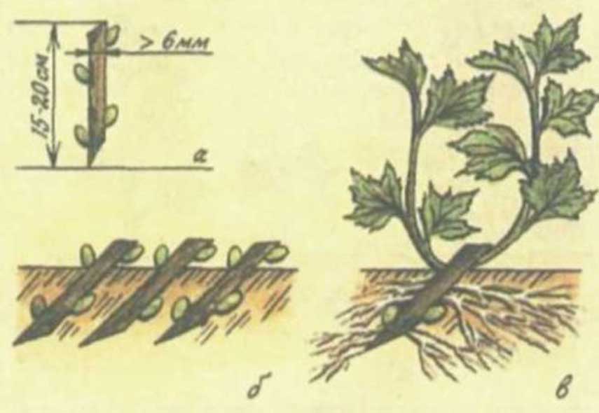 В мае можно высадить в сад черенки смородины, которые были заготовлены осенью. Их высаживают с наклоном в 45 градусов, оставляя снаружи 1 почку. Схема посадки – 60х15см. Если черенки не были заготовлены ранее, а стоит острая необходимость размножить полюбившиеся сорта смородины или крыжовника, можно пригнуть к земле нижние ветки, уложив их в заранее приготовленные в грунте канавки. Чтобы побеги не поднимались, их пришпиливают специальными шпильками или приваливают камнем. Один маточник может за сезон дать жизнь 30-50 новым растениям.