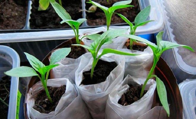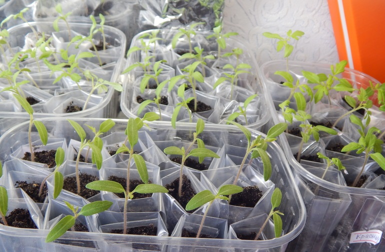 Точно так же ухаживают за томатами, семена которых посажены прямо в пеленки. Пикировать не нужно, они и так растут в индивидуальных емкостях. Только не в горшочках или стаканчиках, а в конвертах.
