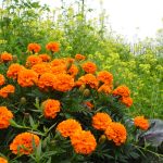 Цветут сорта прямостоячих бархатцев с июля до поздней осени. Цветочные корзины от желтого до интенсивно оранжевого.