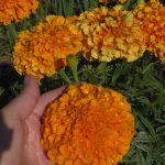 - Высокие сорта бархатцев высотой 60-80 см подходят для резки. Среди них присутствуют сорта с соцветиями гвоздичного типа (цветы слегка гофрированные или компактные, с завитыми краями), соцветиями типа хризантемы – состоят исключительно из трубчатых цветов, сильно вытянутых.