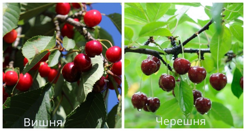 На некоторые отличия указывают их ботанические характеристики. И тот, и другой вид относится к роду Сливовых, и на латыни они имеют одно название – Cerasus, что указывает на их общее происхождение. Отличия вишни и черешни видны на фото.