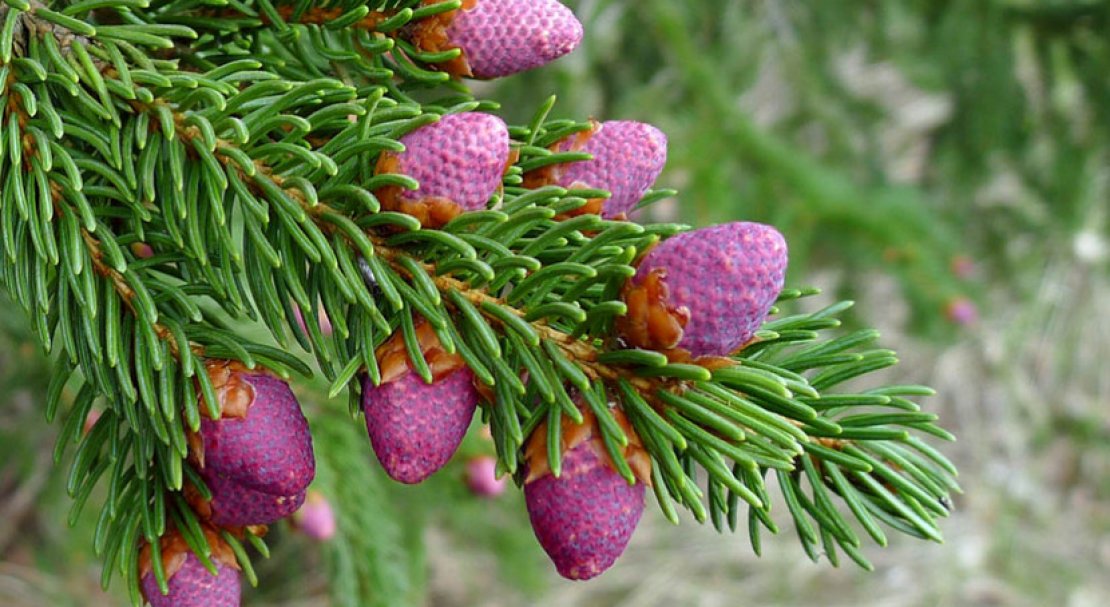 Украшением являются шишки. Особенно красива ель весной, когда она усыпана ими вместе с зелеными побегами.
