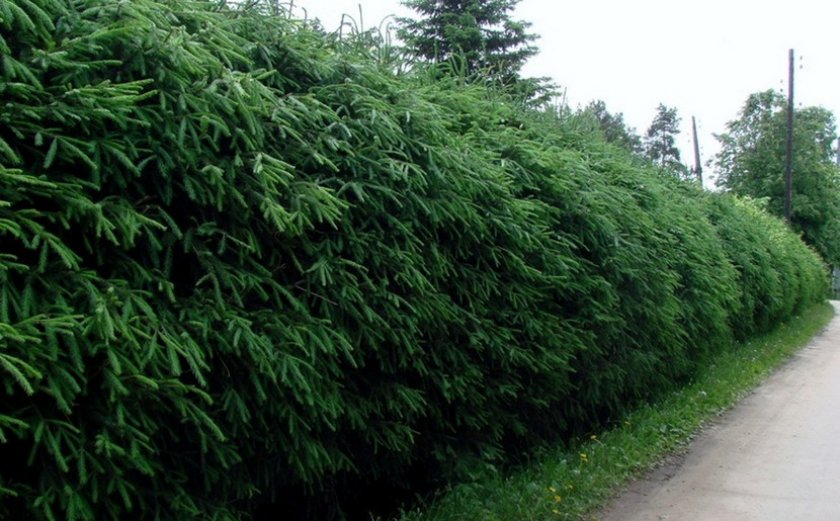 Зонально разделяя территорию живой изгородью из ели, рекомендуется подбирать растения высотой до 150 см, тем самым избегая чрезмерной густоты и плотности зарослей.