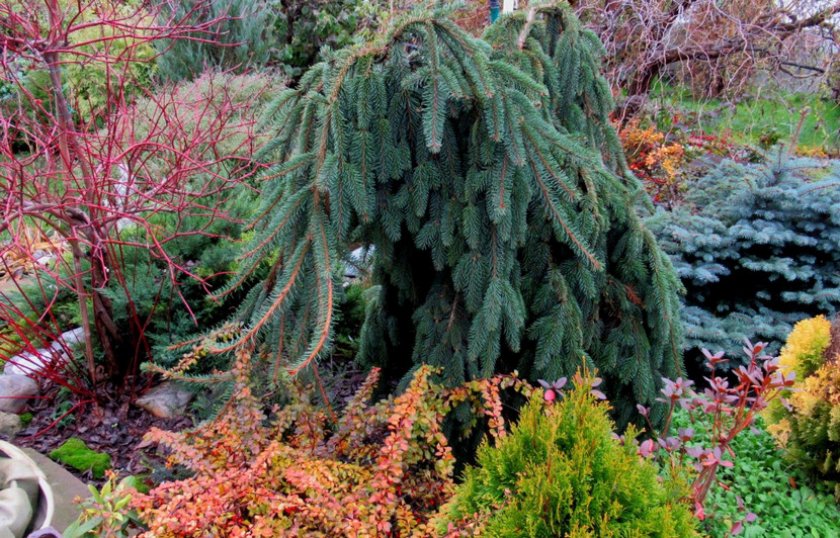 Елями можно обрамить садовую аллею, а также располагать дерево рядом с другими хвойными, но при этом предусмотрите, не станут ли ели мешать друг другу и затенять более низкие посадки.