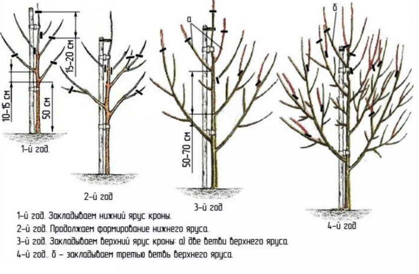 Основное правило — не оставлять торчащих обрубков, обрезать до основания, «на кольцо». В первый период цветения обычно обрывают до 80% цвета, чтобы ускорить приживаемость. Первые пару лет плодовые завязи нормируют, обрывая третью часть, чтобы в дальнейшем стимулировать появление более крупных плодов.