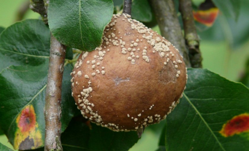- Монилиоз — болезнь проявляет себя на плодах, вызывая своего рода ожог. Избежать заражения поможет своевременная уборка оставшихся плодов на ветвях и в почве. Начиная с весны, проводят обработку медным купоросом (1%) или бордоской жидкостью (1%).