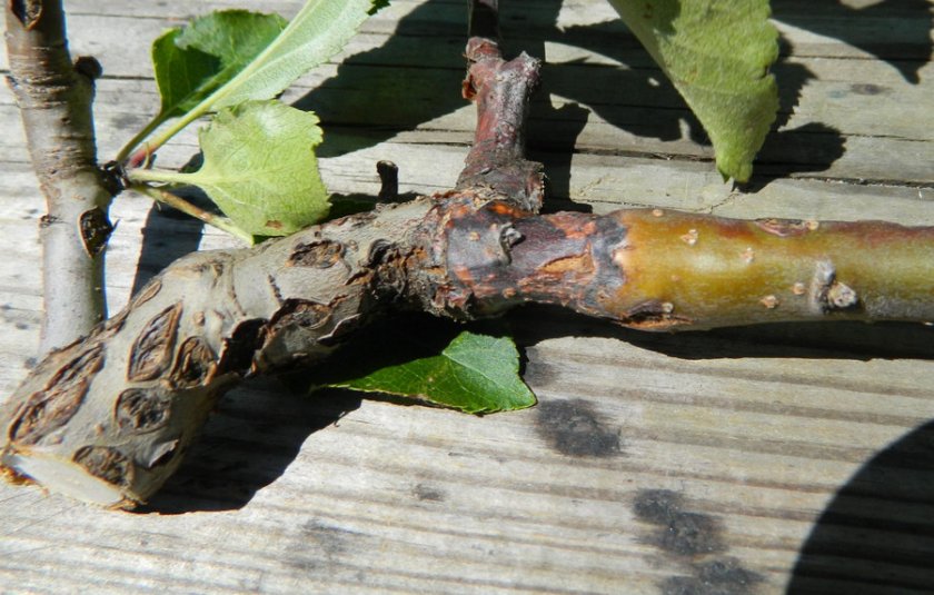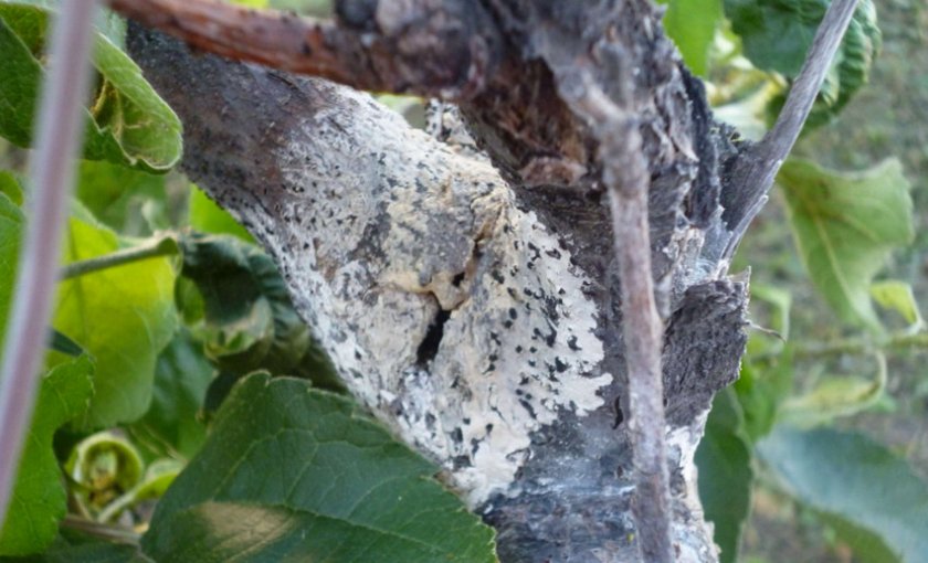 - Цитоспороз — поражает кору, если в ней есть повреждения. Уничтожить грибок можно с помощью опрыскивания медным купоросом (2%). Перед обработкой удаляют все больные ветви, их нужно сжечь. После этого обработанные раны на коре «закрывают» садовым варом.