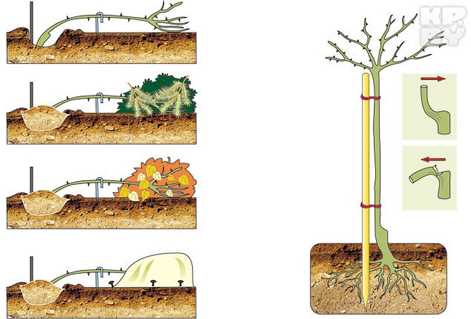 Окучивание помогает сохранить у растения большое количество почек, и весной можно будет применить любой способ обрезки. Температура воздуха под таким надежным земляным укрытием (даже при отсутствии снежного покрова) некоторое время остается значительно выше, чем снаружи.