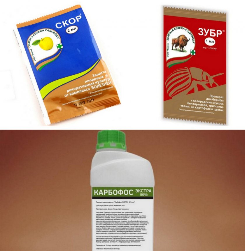 - препараты «Скор», «Карбофос», «Зубр» и другие являются современными средствами и могут использоваться по отдельности, так и в смеси (согласно инструкции).