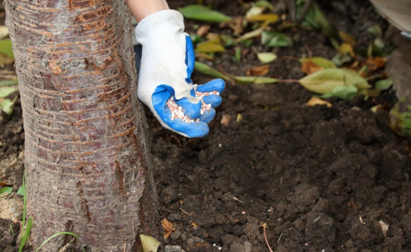 Осенние подкормки являются корневыми, когда питательные вещества вносят в приствольный круг. Жидкие удобрения оптимальны для молодых деревьев. Сухие подкормки удачно растворяются осадками. Препарат необходимо рассыпать по диаметру кроны, отступив от ствола около 50 см, и перекопать почву на глубину 10–15 см. Земля в это время должна быть влажной, поэтому, если не было дождя, может понадобиться полив.