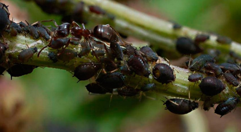 - Бобовая тля съедает соцветия, в результате чего происходит ухудшение декоративных свойств спиреи. Взрослые насекомые поселяются в молодых ветвях, в результате чего происходит остановка их роста и скручивание листьев. Для борьбы с ним рекомендуют использовать 0,1%-ный раствор примора.