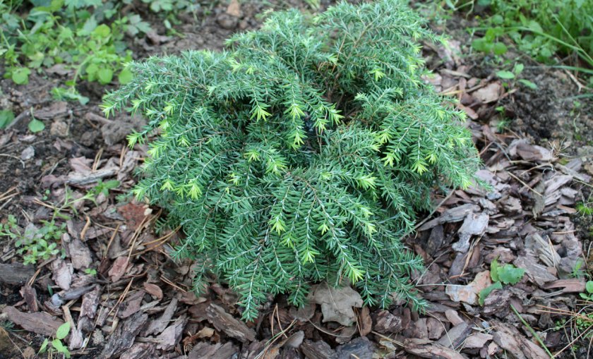 Это один из немногих представителей хвойных, который прекрасно себя чувствует в тени, поэтому растение можно высаживать рядом с тенелюбивыми хостами, роджерсией, гаультерией, папоротниками и другими тенелюбивыми декоративными культурами.