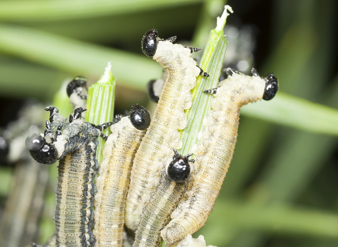 - Следите за прогнозами погоды, так как развитию пилильщиков благоприятствует теплые и сухие май и июнь. Если ожидается высокая температура и отсутствие дождей в начале лета, нужно чаще осматривать растения. В дождливую погоду личинки пилильщиков часто гибнут, так как высокая влажность содействует массовому распространению заболеваний.