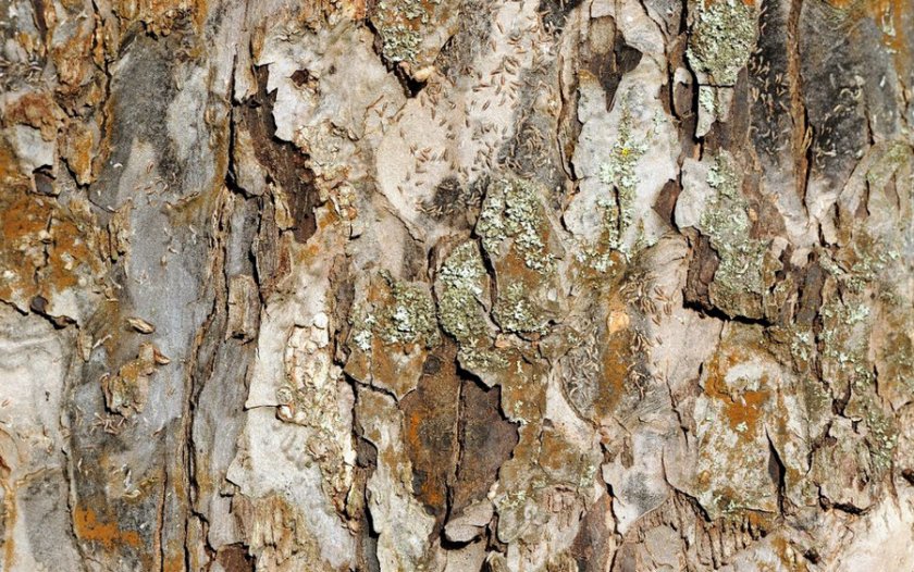 - На поверхности коры можно выявить маленькие отверстия в форме овала, это и есть ходы насекомого.