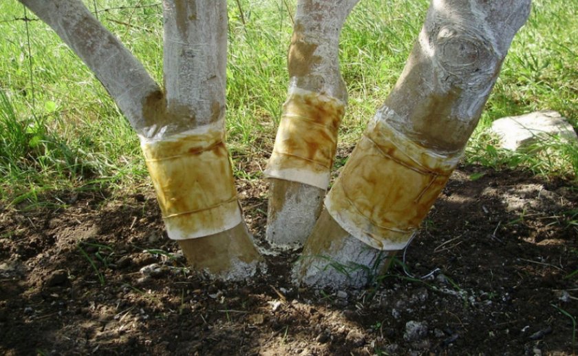 Также часто используют ловчие пояса. Готовят их следующим образом: на ветку или ствол наматывают широкую полосу полиэтилена, плотно его прикрепляют и смазывают густым клейстером или другим липким веществом. Насекомые, попадая на дерево, прилипают к поясу и со временем погибают.