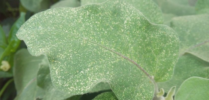 Паутинные клещи Tetranychidae чаще всего заполняют нижнюю часть листьев баклажанов, где образуются участки с малозаметной паутиной: