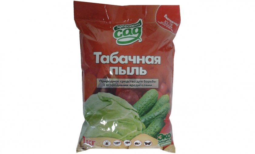 - Табачная пыль — используется в совокупности с древесной золой. Элементы смешивают в пропорции 1:1. На каждый 1 м² насаждений расходуется по 100 г смеси в сухом виде. Максимально допустимое количество обработок — 2 раза в сезон.