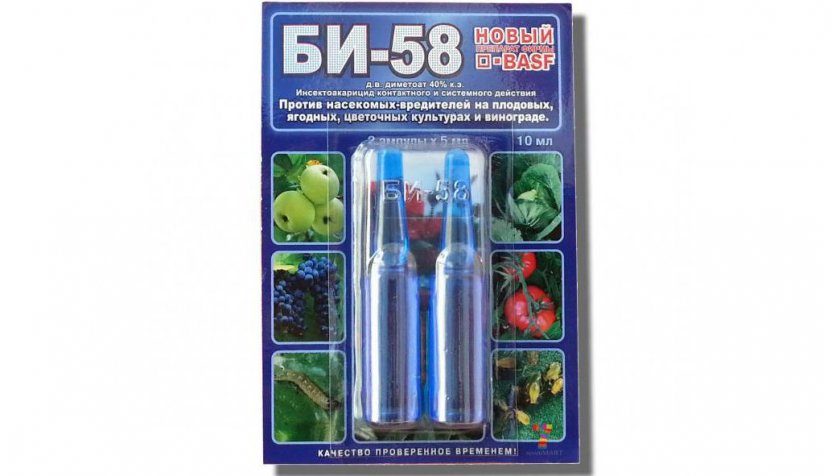 - «Би-58» — контагиозный инсектицид. Для приготовления раствора на 10 л воды добавляют 2 ампулы вещества. Проводятся 2 обработки с интервалом 3-4 недели.
