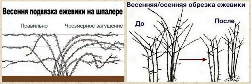 Осенью, после сбора урожая, удаляют плодоносившие ветки под корень, а также убирают сухие и с признаками заболеваний ветви. Молодую слабую поросль тоже необходимо срезать. Выращивание описываемого сорта не возможно без опоры. Самый удобный способ по отзывам садоводов — это шпалеры.