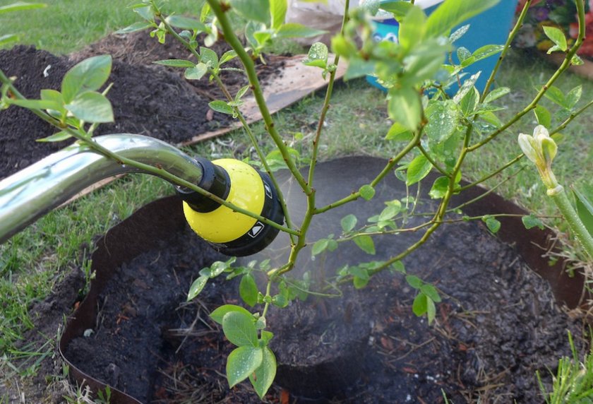 Если нужно увеличить кислотность грунта, голубику можно полить 2 раза в год подкисленной водой: в 10 л воды растворить 3 ч. л. лимонной кислоты, 100 мл яблочного уксуса или 40-60 г коллоидной серы.