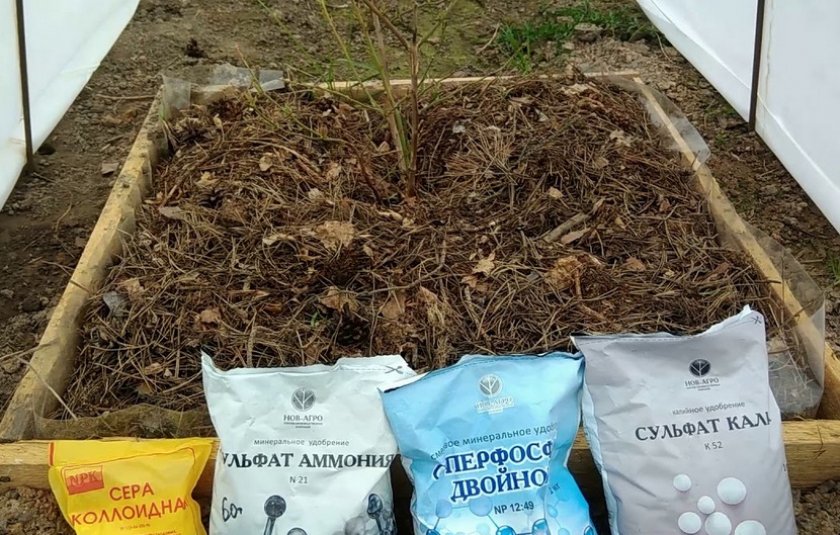 - На этом этапе необходимо подпитать грунт путем внесения в яму минеральных удобрений с высоким содержанием азота и серы.