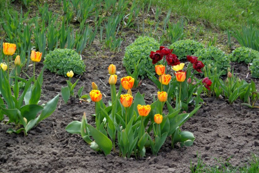 В первую очередь нужно определиться с местом, куда посадить тюльпаны. Они хорошо себя чувствуют на грядках, где их предшественниками были овощные и цветочные культуры, за исключением представителей семейства паслёновых и луковичных растений. Из-за того, что цветение тюльпанов пышное, но достаточно короткое, они часто соседствуют на клумбах с многолетниками, период вегетации у которых начинается позже, чем у весенних цветов.