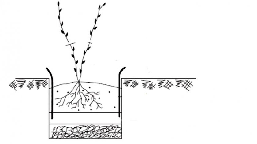Выбор саженцев стандартный: должна быть развитая система корней, без видимых болезней и повреждений, присутствие 2-3 побегов обязательно.