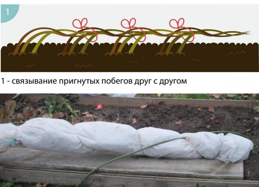 В средней и северной области, помимо пригибания к земле, кусты нужно утеплить защитным материалом. Особенно актуально это для тех регионов, где снега выпадает мало, но бывают сильные морозы и холодные ветра.