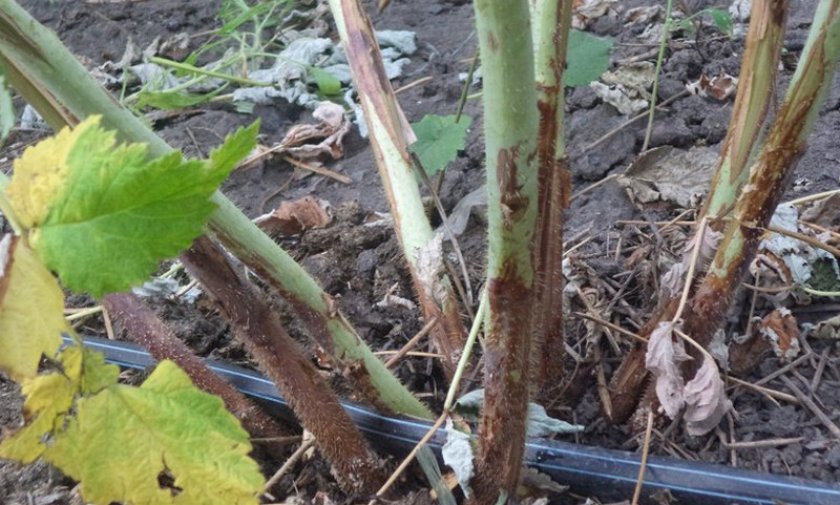 Осенью, пока ветки малины податливые, их нужно пригнуть к земле для укрытия снегом. Больные ветки нужно вырезать и сжечь, чтобы предотвратить повторное заражение малинника весной. Если часто наведываются грызуны, садоводы переплетают прикорневую часть кустов мешковиной или лентами из пленки.