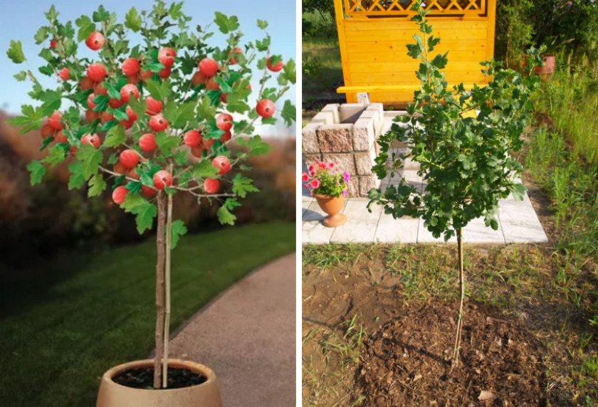 Штамб. Штамбовый крыжовник внешне похож на деревце. Для того, чтобы получить такое растение, надо оставить один самый сильный, мощный и здоровый побег из всех, а остальные просто удалить под корень. В дальнейшем следите за тем, чтобы не отрастали новые побеги и прикорневая поросль. Снизу, на высоте до 1 м, необходимо убрать все плодоносные почки. Следует оставить только 4-5 верхних почек, из которых и будет развиваться крона. В два первых года все побеги укорачивайте вдвое. Начиная с третьего года вегетации, ветки укорачивать не нужно. Ежегодно следует проводить санитарную обрезку штамба (удаляйте старые, повреждённые побеги и те, которые имеют направление роста внутрь кроны).
