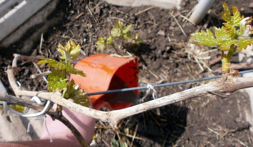 После полного впитывания воды следует сделать ряд действий, которые помогут саженцу акклиматизироваться. Если посадка винограда была весной, существует опасность, что от суховея и высокой температуры произойдёт обветривание почек, и саженцы погибнут.