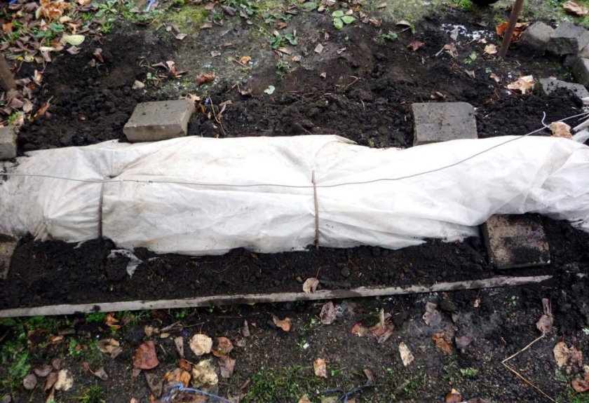 - сверху положить плёнку и укрепить её, придавив чем-нибудь к земле.