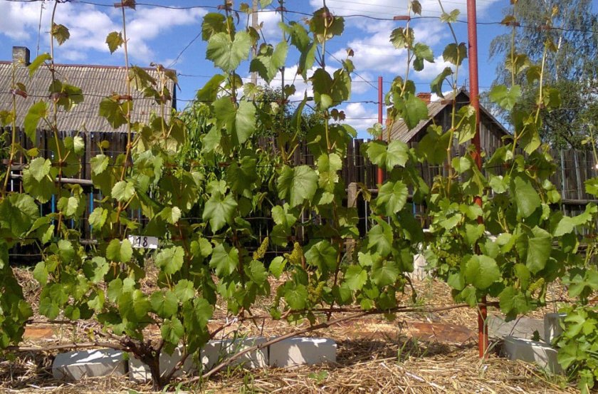 Кусты винограда должны расти, упираясь на опору. В первый год роста саженца в качестве нее может использоваться небольшой колышек. Начиная со второго, рекомендуется установить шпалеру или специальную решетку.