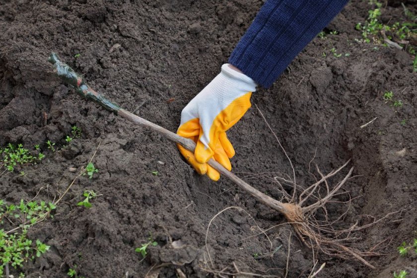 Размеры посадочной ямы должны быть такими, чтобы расположить в ней корни достаточно свободно. Параметры менее 0,75 м делать не стоит. Расстояние между ямами оставляют не меньше 2,5 м, а между рядами растений – не менее 3 м.