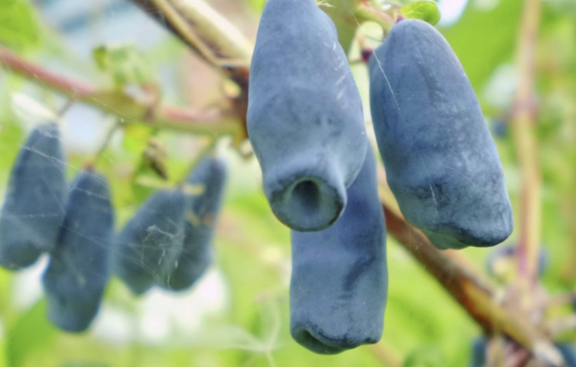 Ягоды жимолости Мальвина покрыты сизым восковым налетом