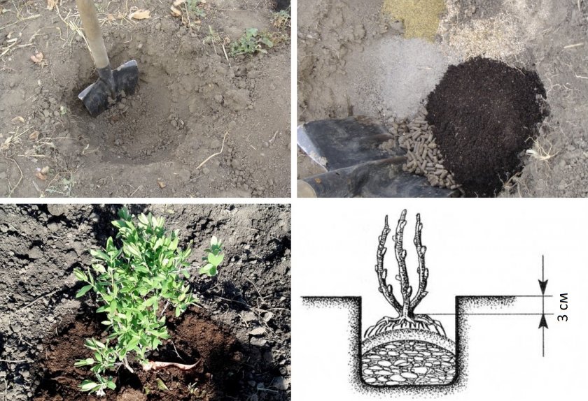 Посадка стандартна для кустов. За месяц до планируемой даты вырывают яму размерами 40х40х40 см, на дно которой на выбор укладывают минеральные или органические удобрения:
